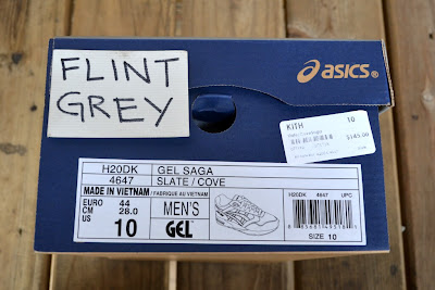 The shoe features a perforated grey sueded upper with hits of lavender and cove blue. These also came with three sets of laces (grey/cove, lavender (flat) and grey (flat).